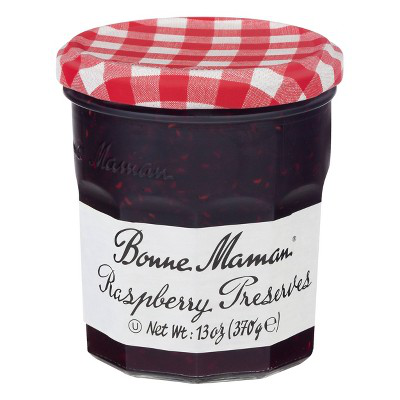 Bonne maman preserves, raspberry is an all-natural fruit spread. this kosher, gluten-free and non-gmo preserve is a product of france. made with raspberries, sugar, cane sugar concentrated lemon juice and fruit pectin, this delicious preserve is a simple and versatile product. this fruit spread is a must-have for every home. each jar of bonne maman preserves, raspberry contains 13 oz. of product.