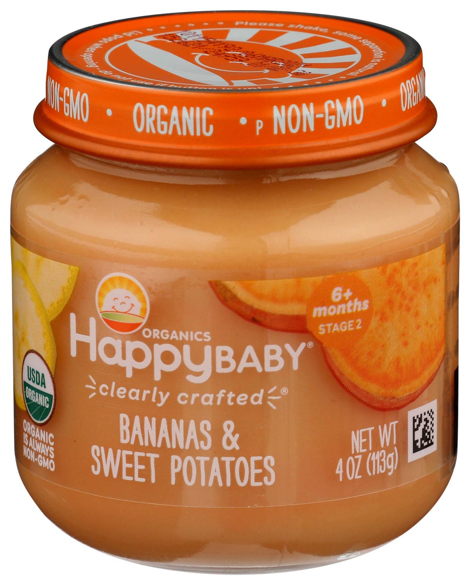 HAPPYBABY 4oz ORGANIC BABY FOOD STAGE 2 CLEARLY CRAFTED BANANAS & SWEET POTATO