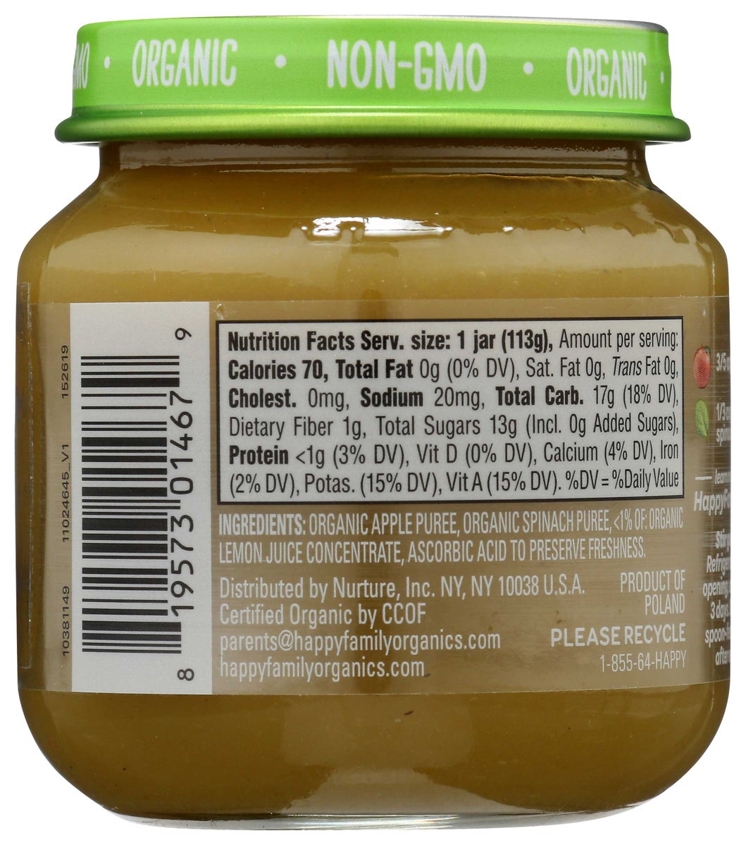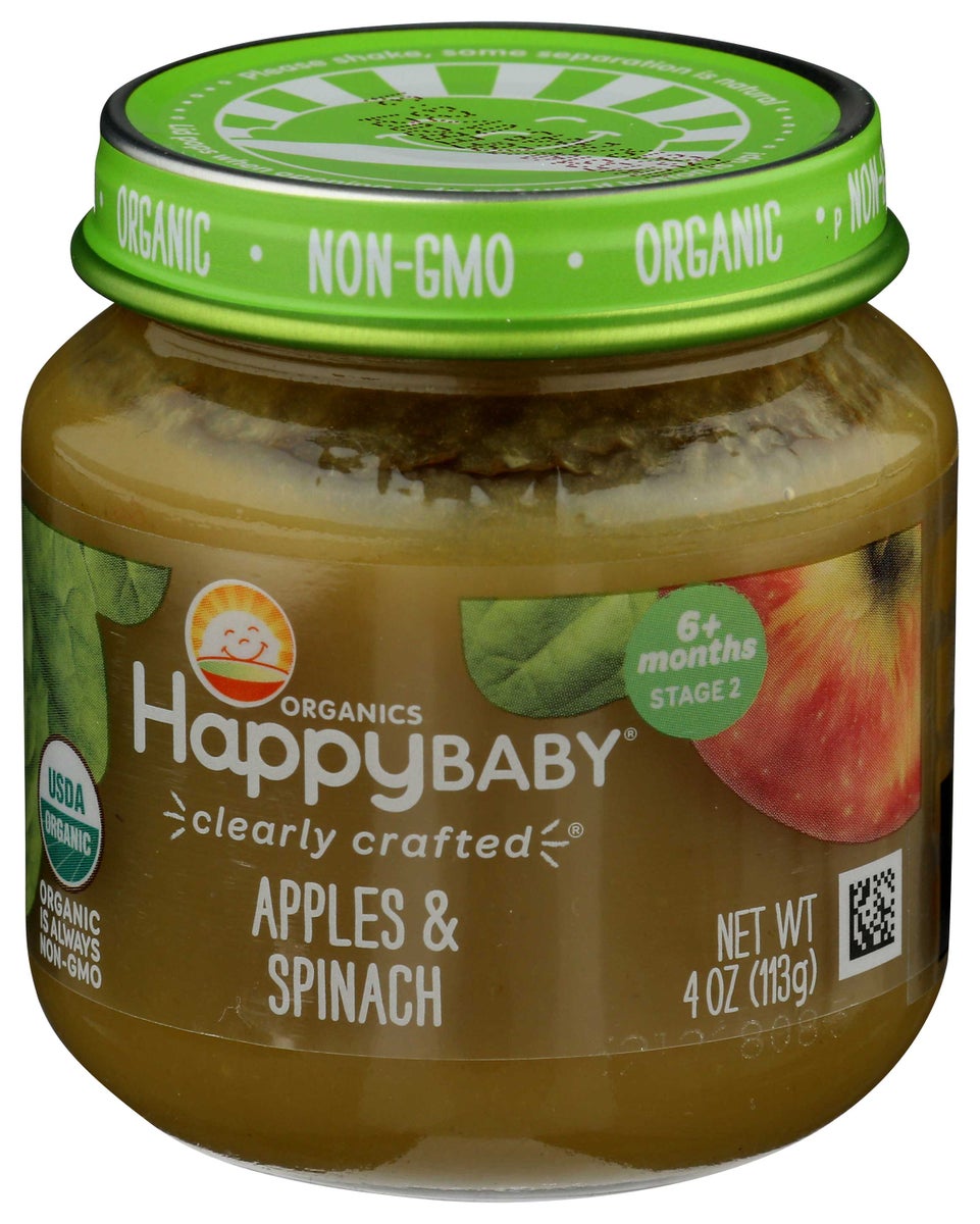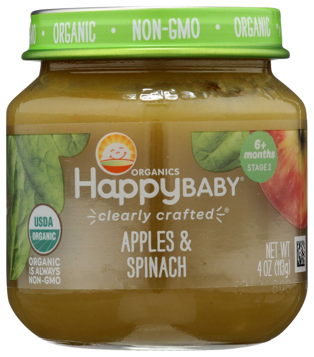 HAPPYBABY 4oz ORGANIC BABY FOOD STAGE 2 CLEARLY CRAFTED APPLES & SPINACH