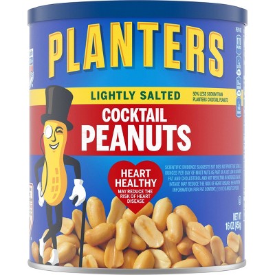 •Planters Lightly Salted Cocktail Peanuts have 50% less sodium than Planters Cocktail Peanuts