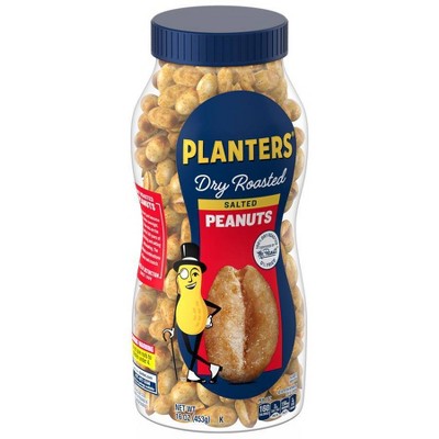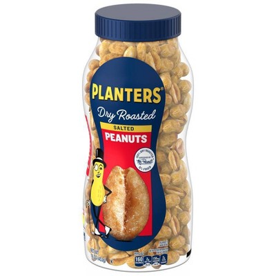 Planters Dry Roasted Peanuts are there for you in crunch time, satisfying your cravings with irresistible flavor. Every batch of these peanuts are dry roasted to perfection, then seasoned with salt to bring out the nutty flavor. These salted peanuts make for a delicious snack that helps fill you up and keep you going. Because every serving is cholesterol free, trans-fat free and Kosher-friendly, these dry roast peanuts are great for sharing with family and friends. Take this 16 ounce jar of dry roasted nuts on your next open-road adventure, or bring the large jar to work for convenient munching or an easy snack.