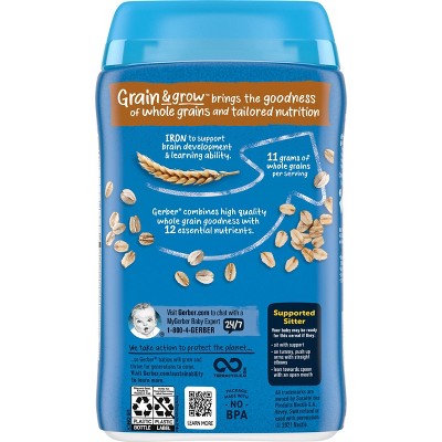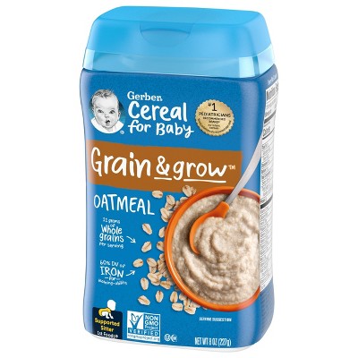 When your baby is ready to start solids, try Gerber Oatmeal baby cereal. It has iron to help support learning ability - just 2 servings of baby cereal a day has 90% of your baby's daily value of iron. It also has Vitamin C and 6 B Vitamins for healthy growth and Calcium to help build healthy bones and teeth.