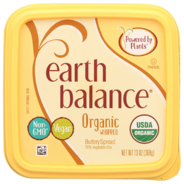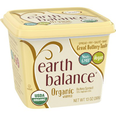 Top your toast, bagels and more with a light, airy buttery delight: Earth Balance Organic Whipped Buttery Spread. This delicious vegan butter alternative is great as a spread or for cooking. It is organic, non-GMO and vegan. From spreads to snacks, our plant-based products are created with integrity, mindfulness and the goal of having a positive impact. Go ahead, spread some on ... Earth Balance is made for everyone.