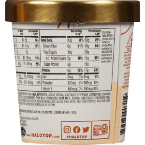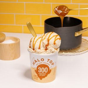 Halo Top Sea Salt Caramel Light Ice Cream delivers the best of both sweet and savory into one scrumptious light ice cream pint that you can enjoy while you pursue your path to wellness. Proof that opposites attract, this delicious flavor features caramel light ice cream mixed to perfection with sea salt and caramel, along with ultrafiltered skim milk and other high-quality ingredients. The result is a creamy frozen dessert that actually tastes like ice cream. While you prioritize your wellbeing this summer, love yourself more with this protein-packed sea salt caramel sweet treat that contains 64% fewer calories and 86% less fat per serving compared to leading ice creams. A delicious Kosher and gluten free snack, this frozen dessert is a great choice for enjoying after a day at the beach or a night at a summer baseball game. You can also use this light ice cream to make ice cream treats, like ice cream sandwiches or ice cream sundaes, for a sweet pick-me-up at the end of a hot summer day. Halo Top light ice cream comes in an easy to store, resealable package, so you can keep it until youâre ready to enjoy a classic frozen treat with a modern twist.