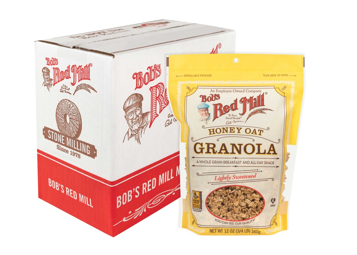 The Bob's Red Mill Honey Oat Granola clusters make a good breakfast or snack option. A good source of fiber, it is kosher certified making it suitable for various dietary needs. The bulk case with 4 packs of Bob's Red Mill Honey Oat Granola is ideal for supermarkets, hypermarkets, and retail stores.