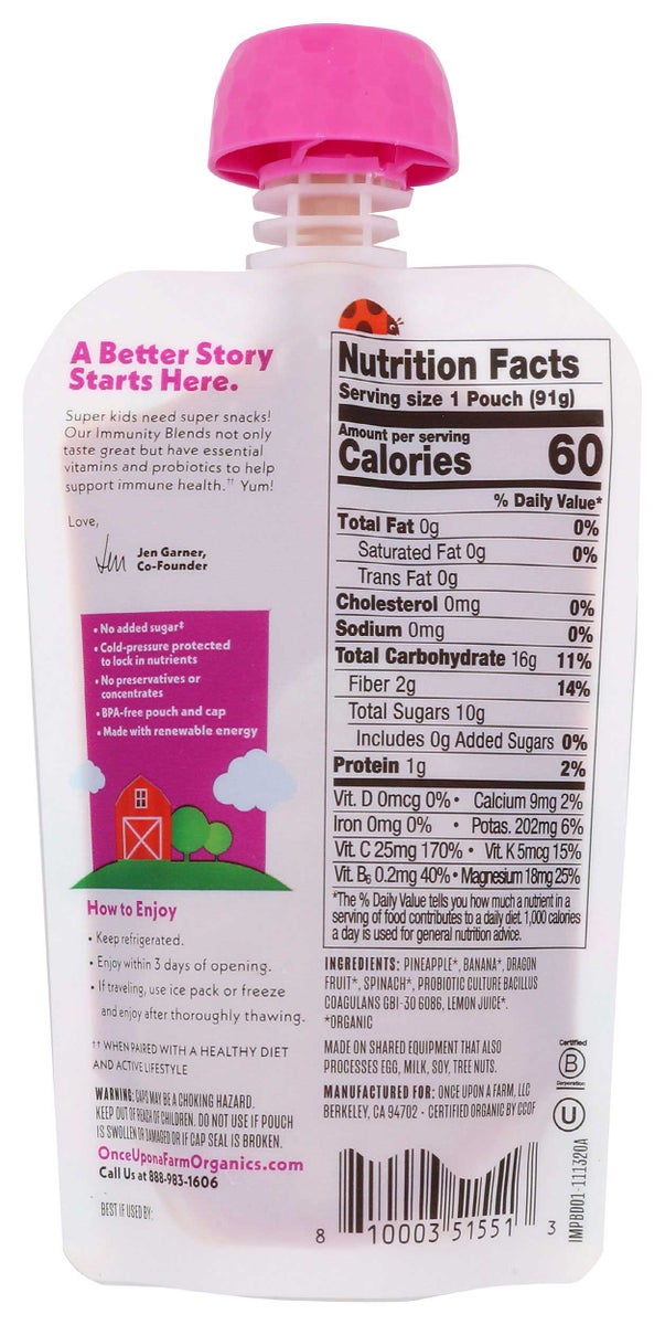 ONCE UPON A FARM 3.2oz ORGANIC PINEAPPLE BANANA AND DRAGON FRUIT IMMUNITY BLEND