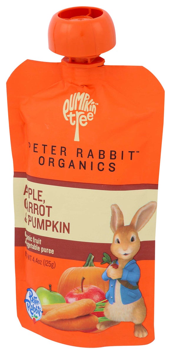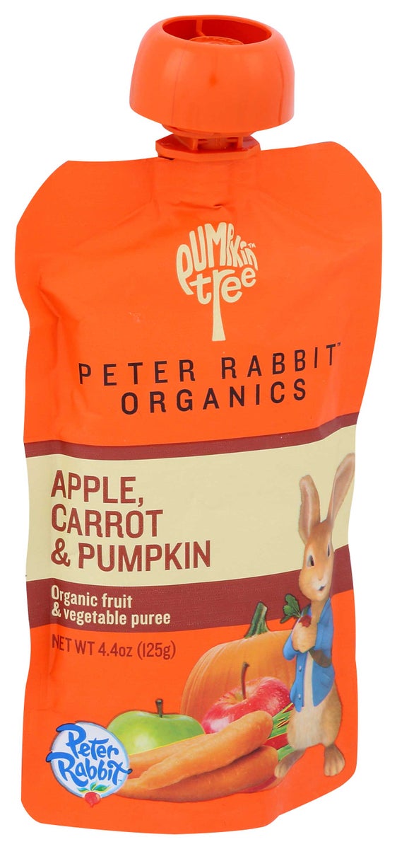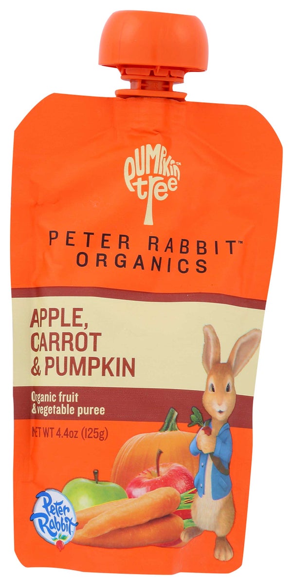 Pumpkin tree organics pumpkin, carrot & apple snack is usda organic certified and made from pure fruits and vegetables. every 4.4 oz. pouch of pumpkin, carrot & apple is made without added salt, sugar or water. a 1-pouch serving provides 3 g. of fiber, 50% of the daily recommended value of vitamin c and 80 percent of the daily recommended value of vitamin a.